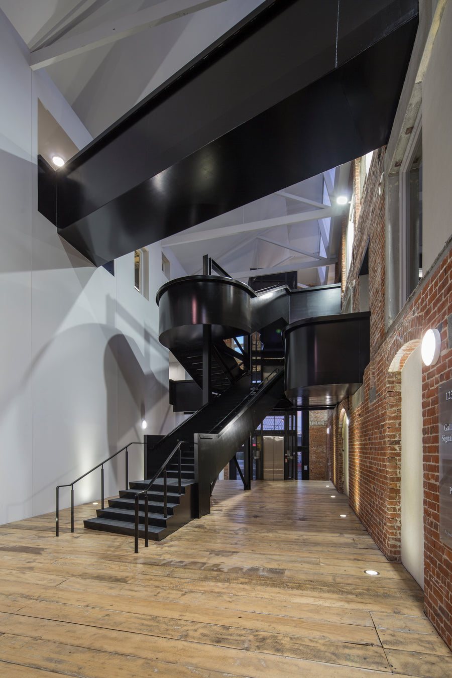 The ground floor was tenanted but the first and second floors were empty and rundown. The owner wanted to restore the building while respecting its history, using light to draw attention to the architecture.