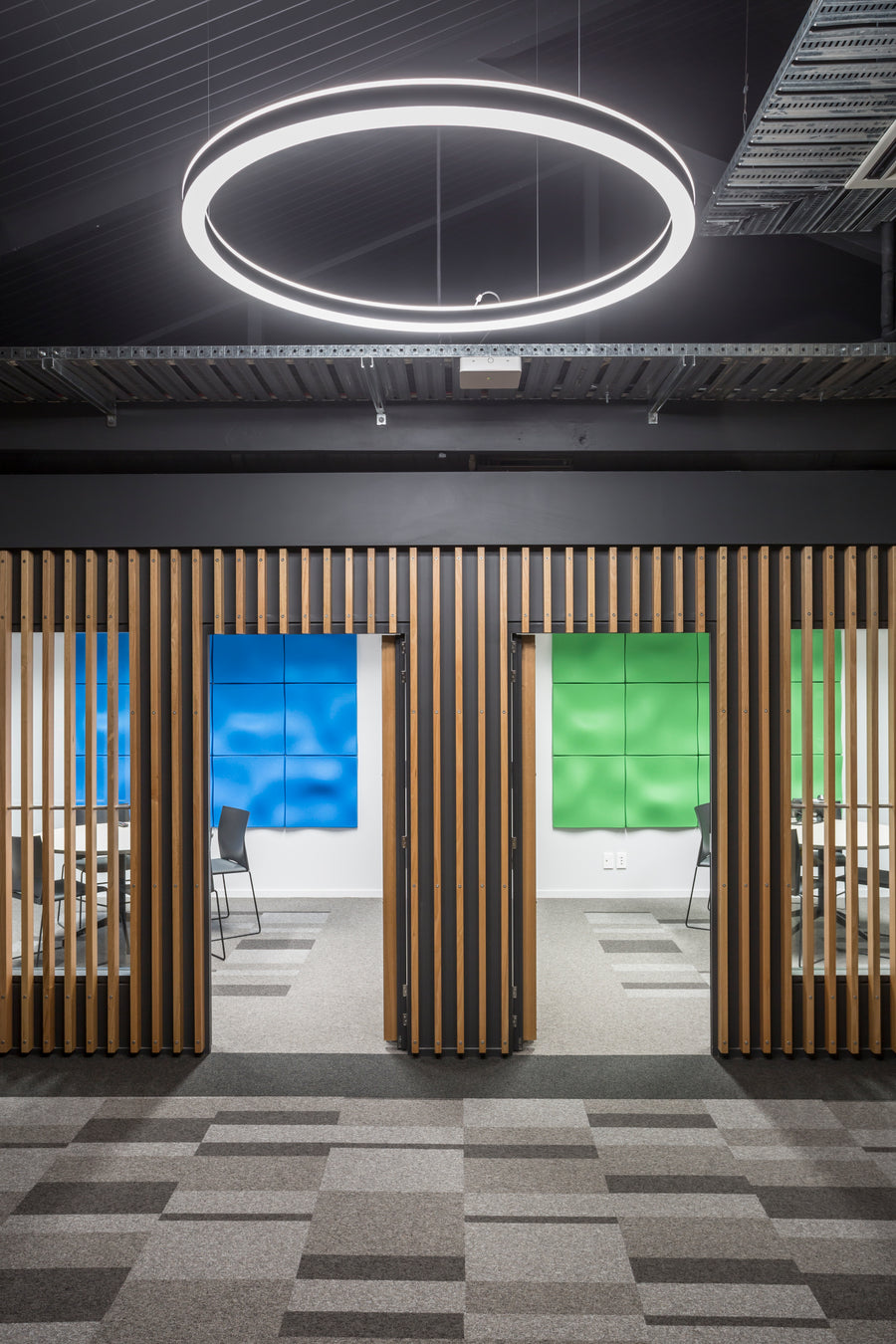 The lighting design for Galloway Cook Allan was split into two zones. The first area was the main client entrance, reception, meeting rooms, cafeteria, and board room.