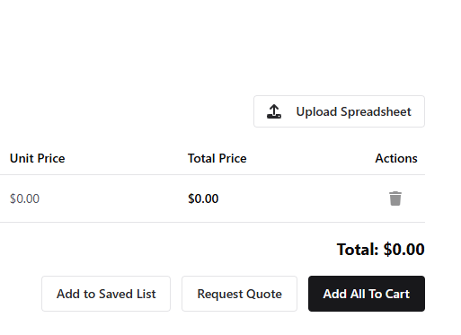 The Quick Order tool makes ordering fast and accurate by letting you search by SKU or product name, adjust quantities, and automatically pull in your special pricing so you can see unit pricing in real time. For larger amount of SKUS (up to 250), you can upload a spreadsheet with SKU and quantity using our downloadable CSV or Excel templates, then easily save the list, request a quote, or add everything to your cart once you’re ready.