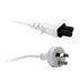 DYNAMIX 2M 3-Pin to Clover Shaped (IEC 320 C5) Female Connector 7.5A. SAA approved Power Cord. 0.75mm copper core. WHITE Colour.