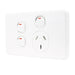 Socket outlet for horizontal installations. Single switched socket with two optional extra switches. Clipsal C2000. Colour: White Electric Rated current: 10A. Operating voltage 250V a.c. 50Hz. Note: Requires installation by an appropriately licenced electrician.