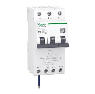 Acti9 iC60H3 RCBO 3P+Ns 10A 30mA Type A D-Curve
