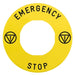 This Harmony ZBY circular legend for emergency stop function has yellow background and is marked with a "EMERGENCY STOP" lettering, and a diameter of 60mm. It is compatible with Harmony XB4 and XB5 padlocking device. This circular legend provides clear labelling of your emergency stop devices units. It is supplied ready engraved with a marking relevant to machine operation and is compatible with Harmony emergency stop or switching off unit. It provides clear and resilient symbol marking on the label, with high contrast.