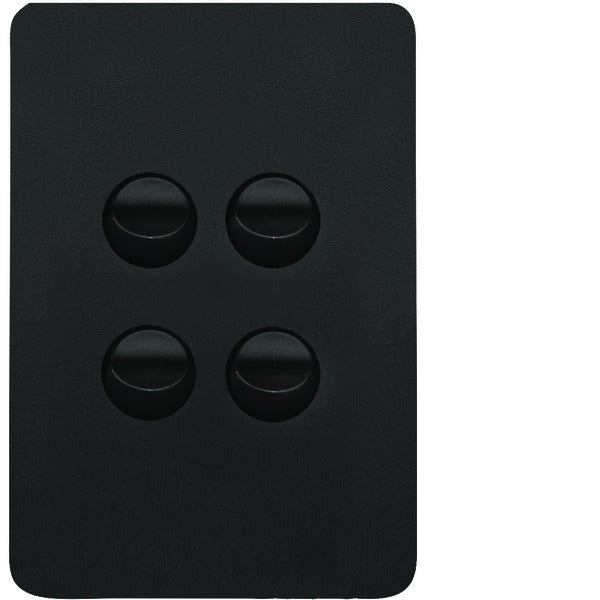 Allure quadruple switch c/w mechanisms, On/Off rocker, 16AX 50 Hz 250V, vertical, Matt Black