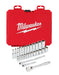 Our MILWAUKEE® Metric 28 piece 1/4" drive Ratchet & Socket set is designed from the ground up, offering our users the Most Versatile Sockets that are Anti-Roll and Wrench-Ready. Its innovative FOUR FLAT™ Sides feature an anti-roll and wrench-ready design. The 90 tooth ratchet tool offers 4° of arc swing and a slim profile design, allowing you to work in tighter and more confined spaces, be it under the hood of a car or in the middle of a remodel. The ratchet and socket kit comes with a removable inner tray which is perfectly designed to be stored long-term in a steel storage chest. All of our sockets are stamped with metric measurements on the flat side for easy-to-read visibility. It also comes with a durable carrying case for ultimate portability. The set comes with accessories included so that our users can get every job done, both in the garage and on the jobsite. Our ratchet and socket set is backed by our Lifetime Guarantee., MOST VERSATILE SOCKETS. ANTI-ROLL, WRENCH-READY, FOUR FLAT™ Sides on socket deter rolling, FOUR FLAT™ Sides feature wrench-ready design, 90 tooth design with 4 degrees of arc swing for tight work spaces, Removable inner tray specifically designed for steel storage case, Slim profile head with flush direction lever, Stamped Socket Sizes Portable Carrying Case, Lifetime Guarantee