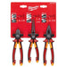 The Milwaukee® VDE 3 Piece Pliers Set includes the VDE Combination Pliers, VDE Long Nose Pliers and VDE Diagonal Cutters. All Milwaukee® VDE pliers feature induction hardened cutting edges to cut even the hardest of materials, with a grey titanium surface finish that is non-reflective and ensures maximum corrosion resistance. They are fitted with ergonomic handles that have a soft grip for comfortable handling and impact protection on the end. They have been VDE certified, tested up to 10,000V and guaranteed to 1,000V and tested against cold to -40° C