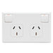 Socket outlet assembly for horizontal installations. Twin switched socket. 600 Series cover and socket grid are included. PDL 600. Colour: White Rated current: 10A. Operating voltage 250V a.c. 50Hz. Note: Requires installation by an appropriately licenced electrician.