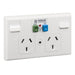 Socket outlet assembly for horizontal installations. Twin switched socket with RCD protection. 600 Series cover and socket grid are included. PDL 600. Colour: White Rated current: 10A. Operating voltage 240V a.c. 50Hz. Note: Requires installation by an appropriately licenced electrician.