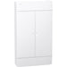Resi9 switchboard enclosure is surface mounted. The rated current is 100A. This switchboard is composed of 3 rows of 15 modules of 18mm (45 modules total). It has plain double door with door opening on both left and right The provided equipment are earthing bar, neutral bar, circuit identification label and blanking plate.